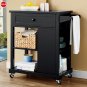 Elegant, smart kitchen storage with built-in 2-plug charging outlet, 1 pullout shelf and 1 drawer. Glass cabinet has 1 adjustable shelf. Four wheels (2 locking). Composite wood with wood veneer. No-tool assembly. 24" w x 47.75" h x 16" d. Product note: The Walnut color is lighter than shown.